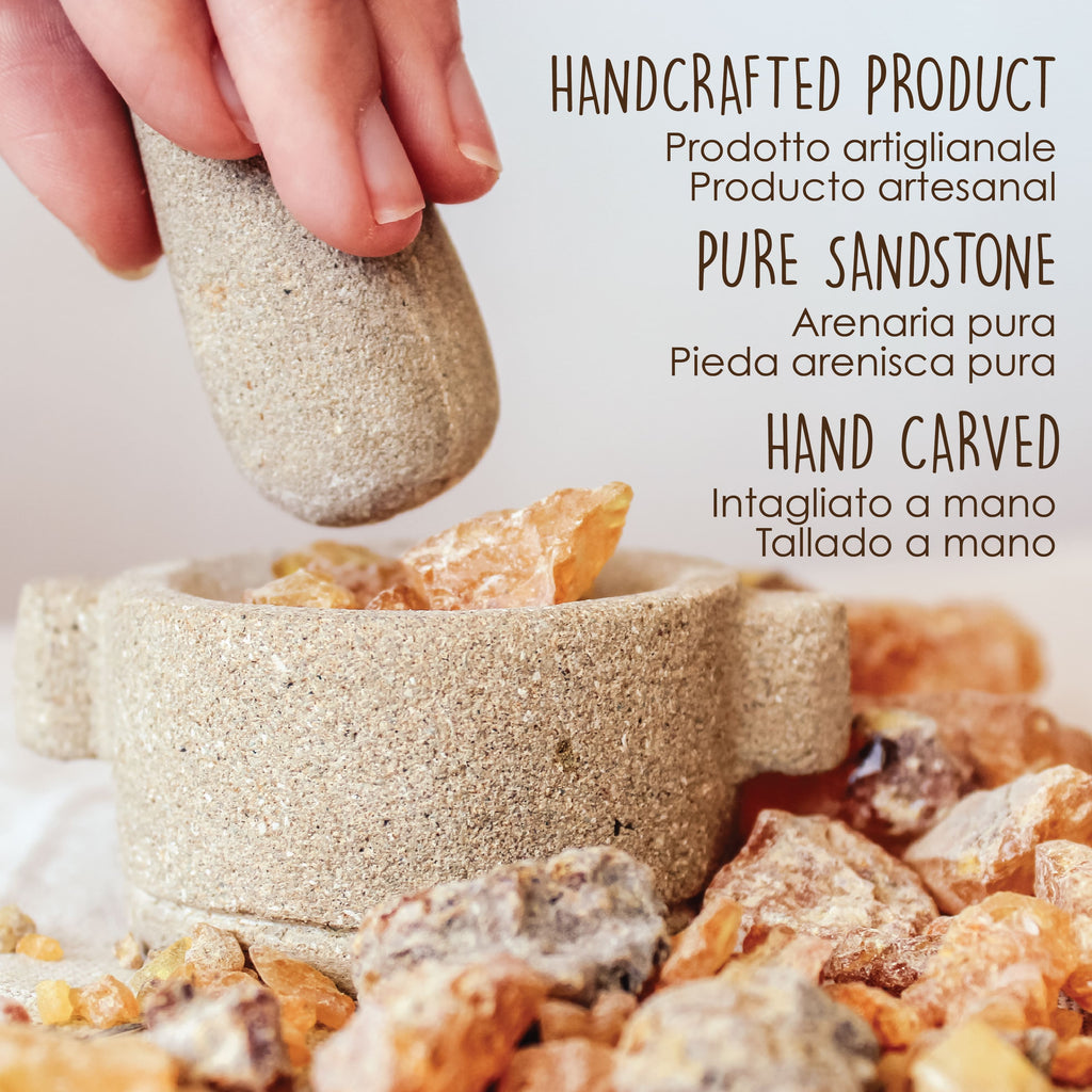 Handcrafted mortar, made of pure sandstone. Ideal for pulverizing resins before their use on charcoal or sublimator.