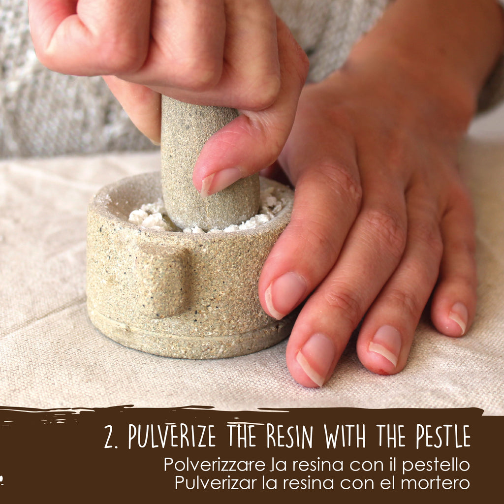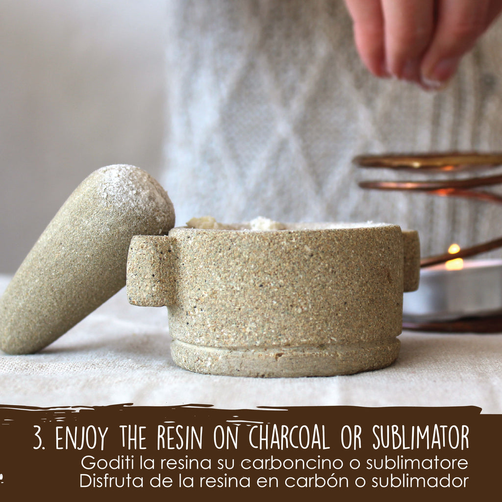 The Sandstone Mortar is the ideal item for pulverizing resins before placing them on the charcoal inside the brazier or sublimator. Place a pinch of resin inside the mortar and use the pestle to pulverize it. Our mortar is handmade by artisans in Ecuador.