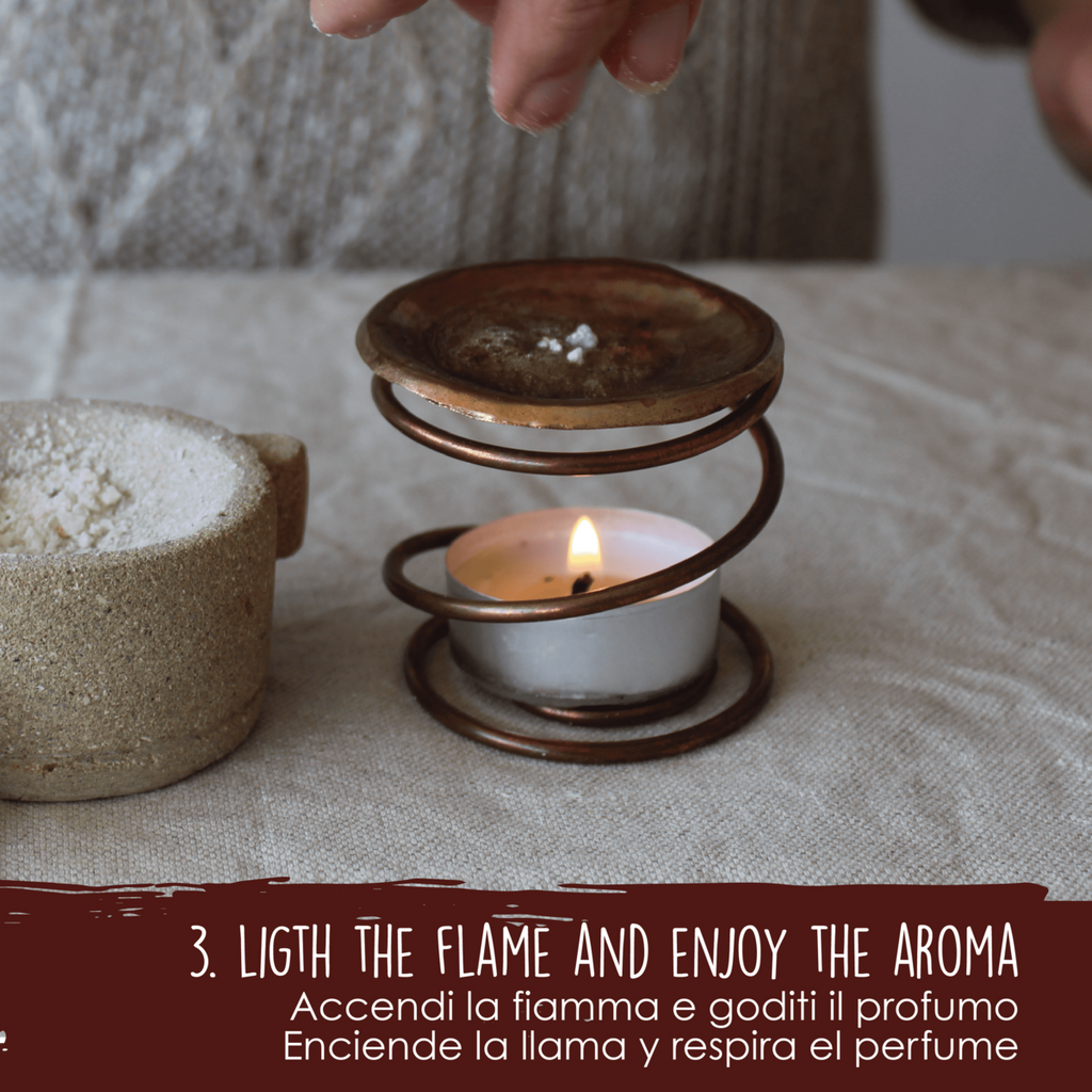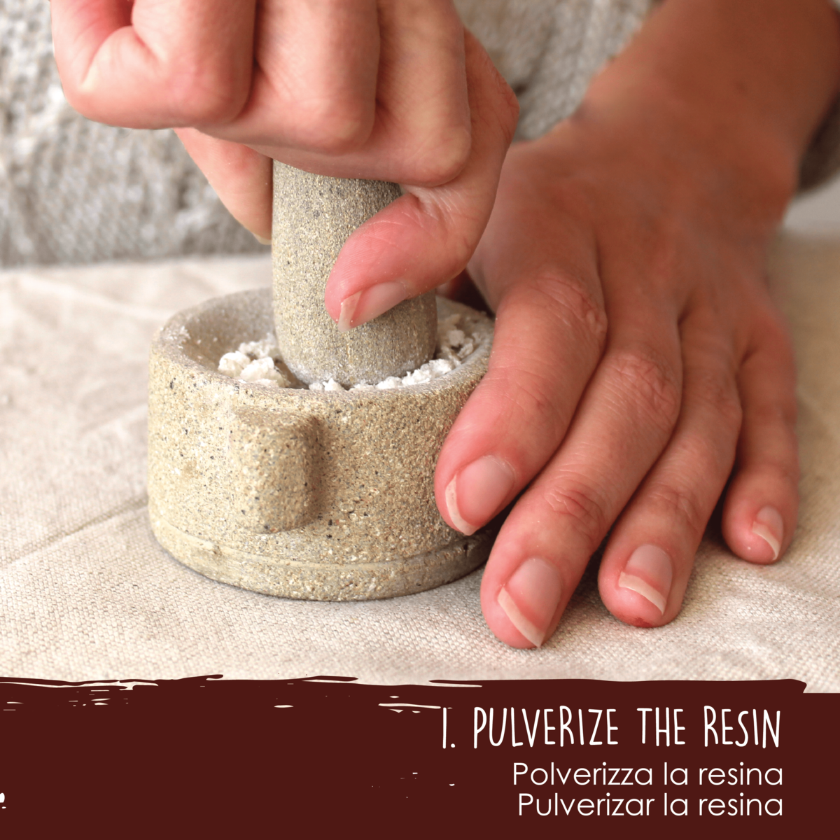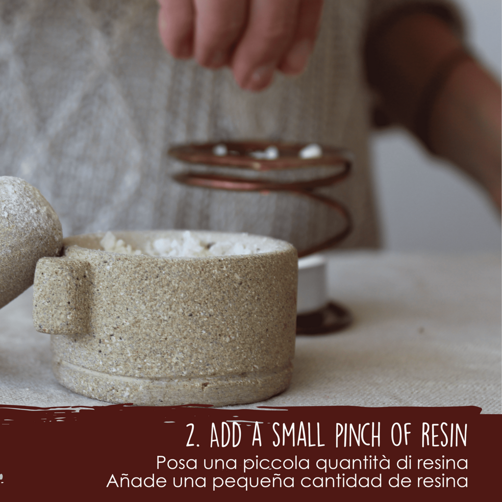3. At this point, place a pinch of resin previously pulverised in the mortar on the saucer.