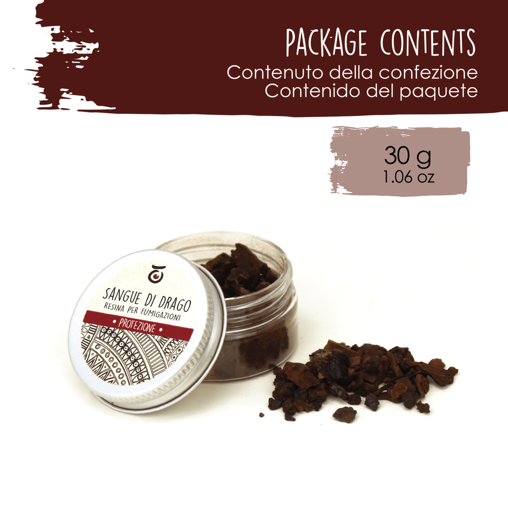 Dragon's Blood resin is extracted from various plants in Peru whose deep red sap is used as a remedy for wound healing. It is ideal for mixing with other resins and herbs to enhance its beneficial effects.