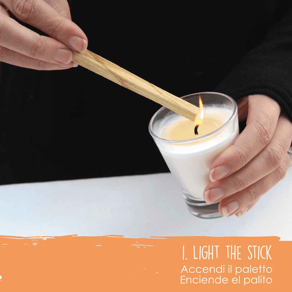 1. Light the Palo Santo stick.