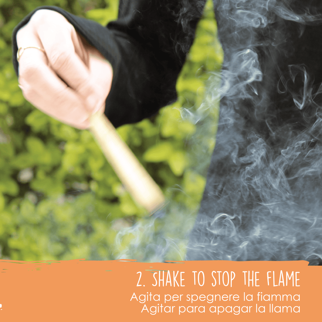 2. Keep the flame lit on the stick for a couple of seconds and then extinguish it. Be careful not to keep the flame lit for too long otherwise you risk burning the resin contained inside the Palo Santo stick.