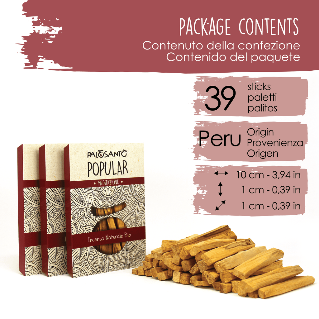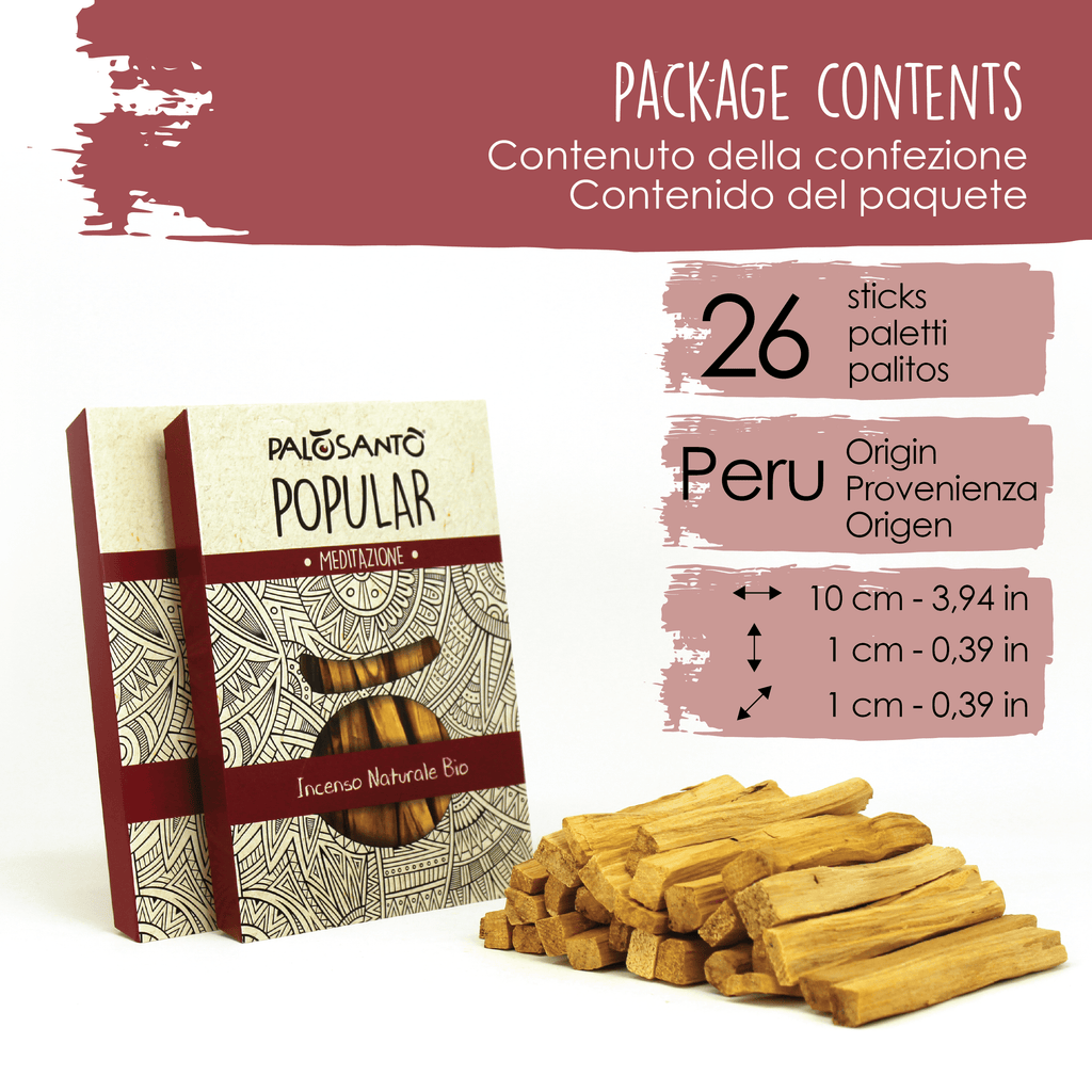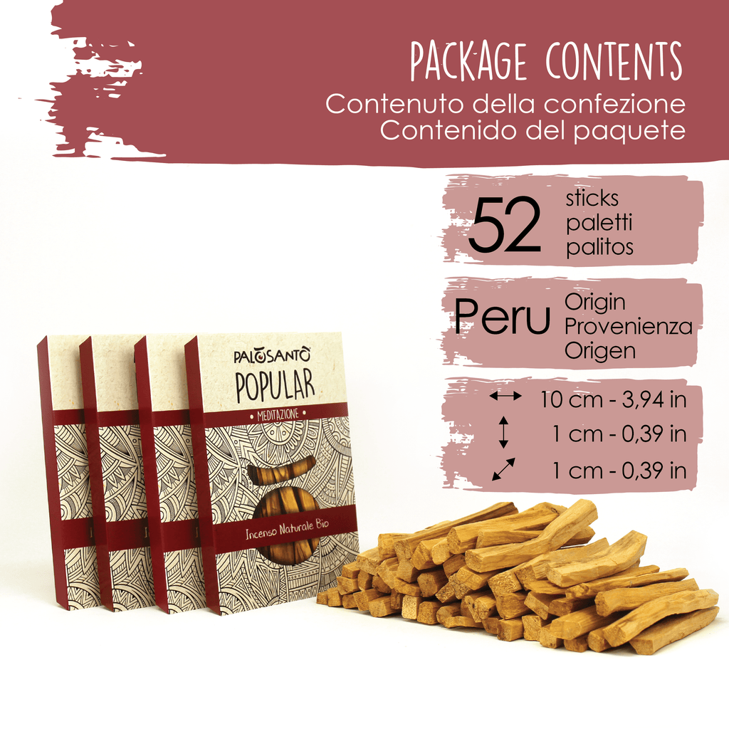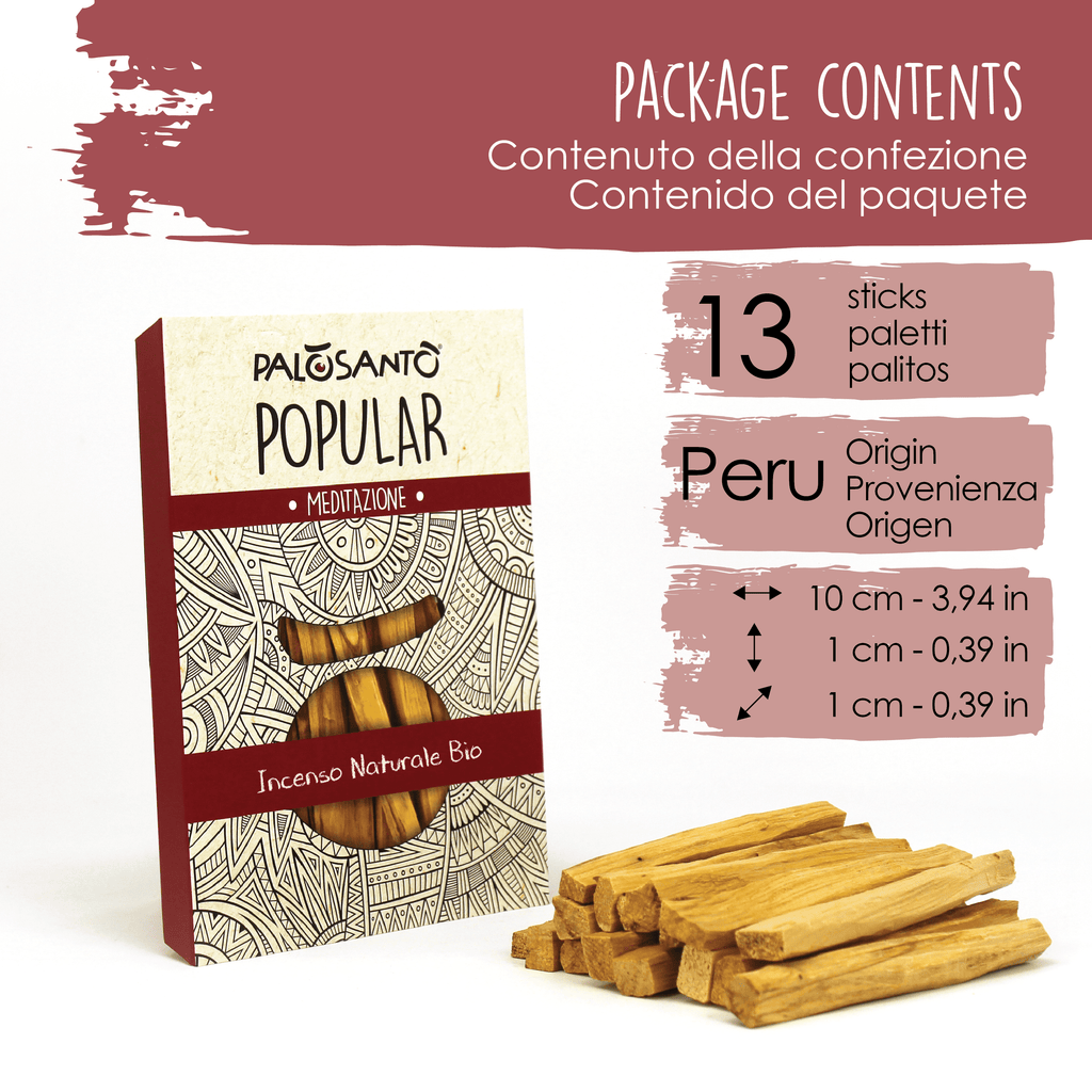 The Palo Santo Popular stands as a testament to the essence of quality. In partnership with local communities, we responsibly gather only Palo Santo wood that has naturally fallen to the ground at the end of its life cycle. After aging for a minimum of three years, the wood is meticulously hand-cut, with each stick carefully selected one by one. Only the finest and most aromatic portions of Peruvian Palo Santo wood are chosen to create the Palosanto Popular collection.