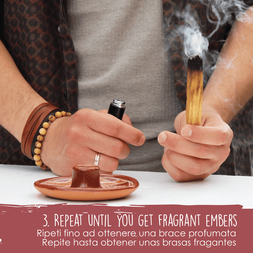 Wondering how to burn Palo Santo? It's essential to let the wood release its aromatic smoke through embers instead of keeping it aflame. This method ensures a long-lasting smudging experience, allowing you to fully enjoy its benefits.