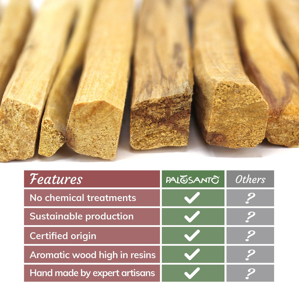 With the Palosanto® brand, you can rest assured that our products are 100% natural and eco-friendly. We collaborate with local families in Ecuador to craft our Palo Santo incense. By prioritizing ethical and sustainable harvesting, we honor the environmental balance of the Dry Forest. We subject our Palo Santo wood to smoke analysis to certify their purity and quality, to offer a genuine and sustainable incense experience.