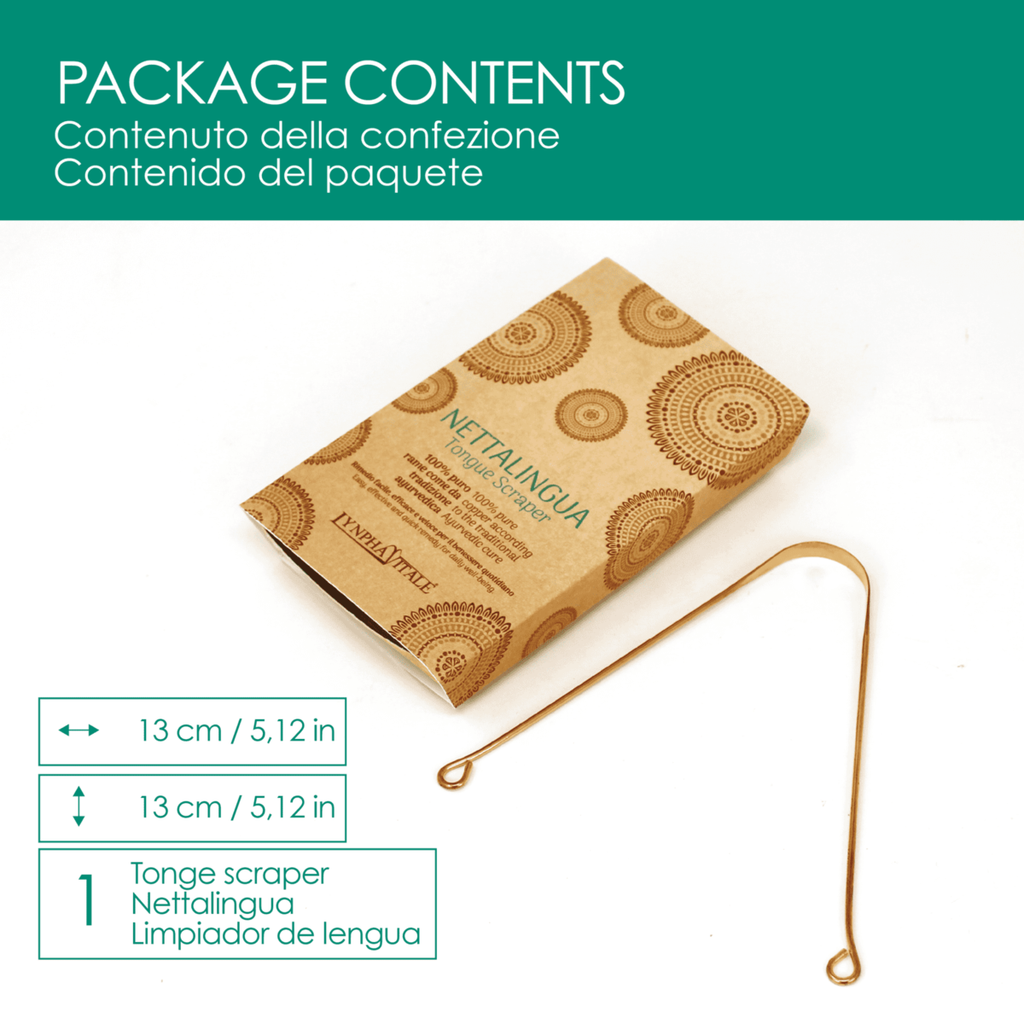 Tongue cleansing, or Jihva Dhati, is a practice in the Ayurvedic tradition to remove the coating of bacteria and toxins that settles on the tongue at night. In addition to being the ideal tool for perfect tongue and mouth hygiene, the tongue cleaner helps to reduce general intoxication of the body and combat various problems, including halitosis, oral inflammation and bacterial plaque.