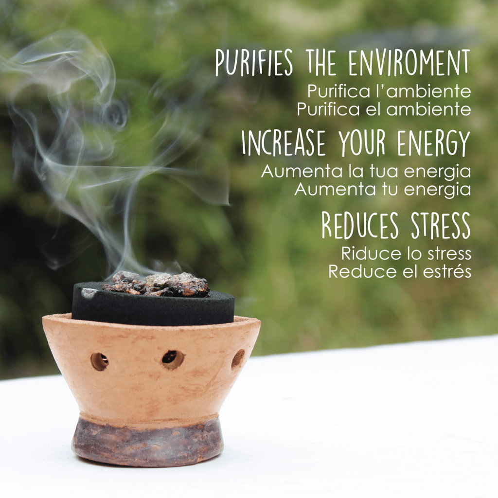 100% natural resin hand-picked by local communities in full respect of the plants' life cycle and the ecosystem. They have been used for ceremonies and energy purification rituals for thousands of years. Each resin has specific beneficial properties.