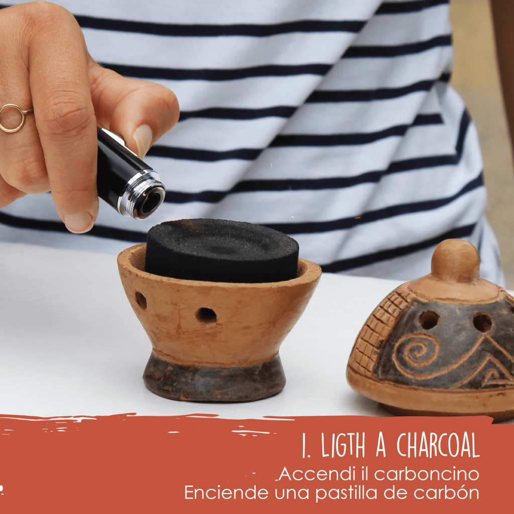 • If, on the other hand, the resin has exhausted its aroma, after extinguishing the candle and allowing the saucer to cool, the resin must be peeled off by applying pressure under the copper saucer.