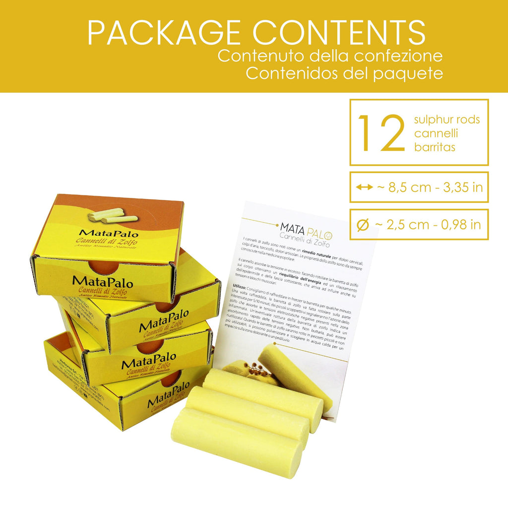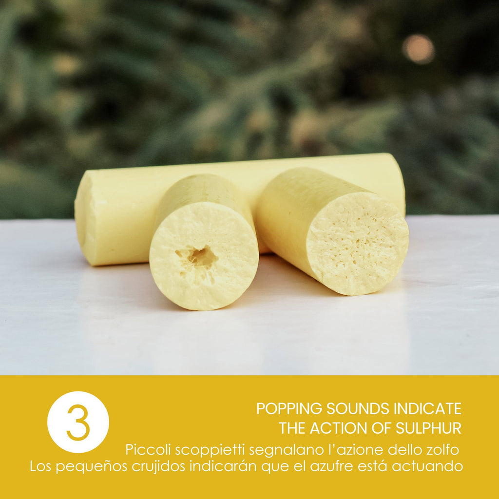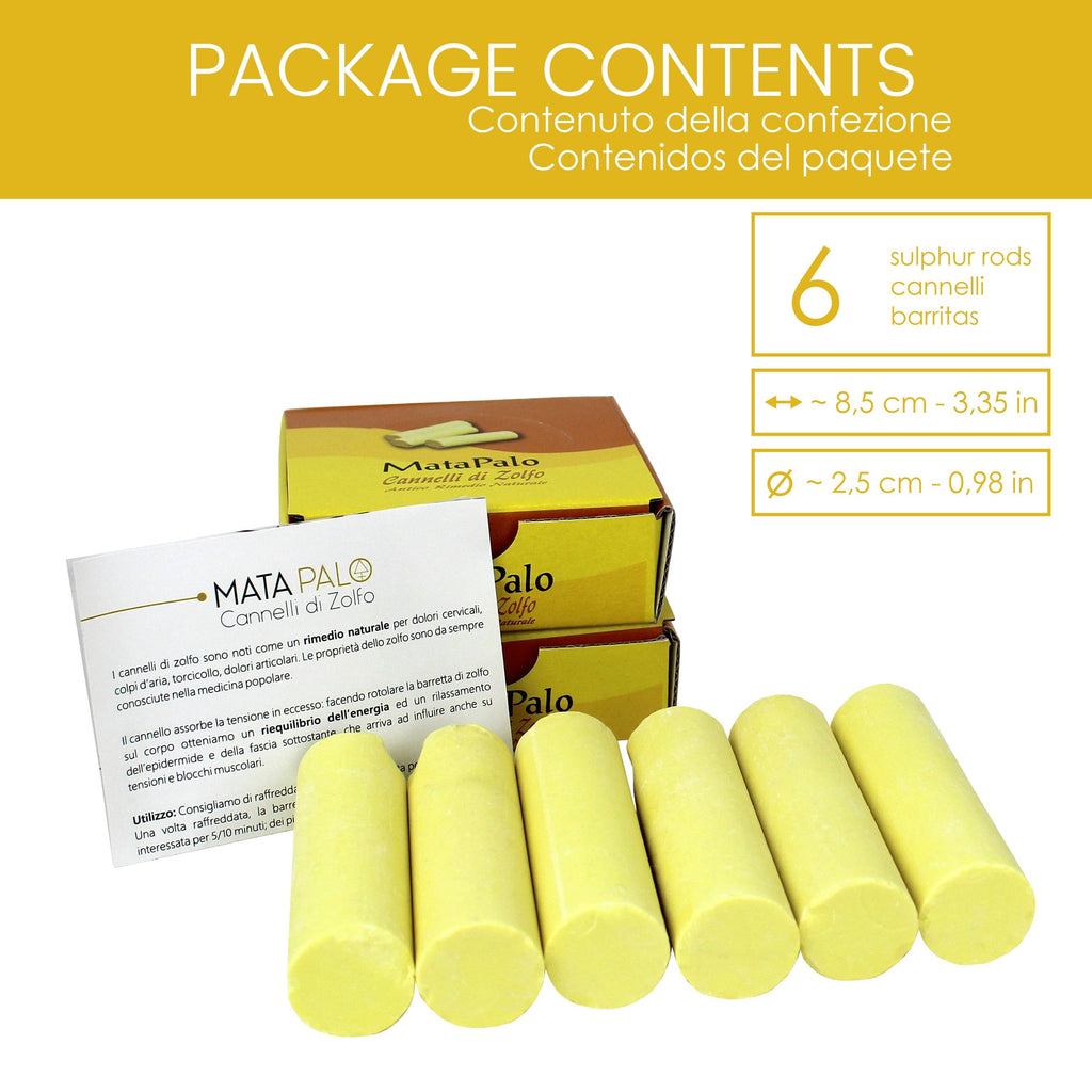 Sulfur rods are an ancient natural remedy traditionally used by South American peoples. Practicing a massage with these sulfur sticks can help relieve muscle tension and contractures.